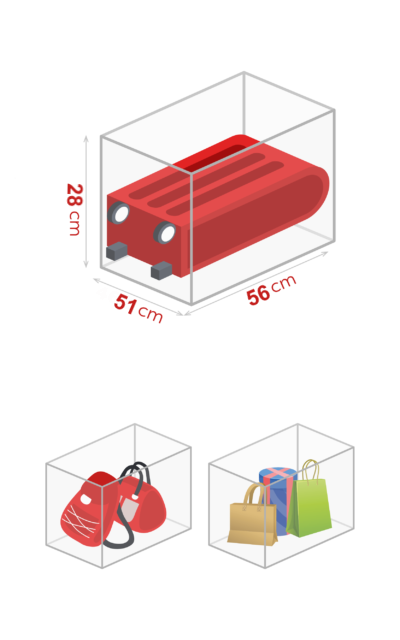 Select the size of a locker and simply book it online. The following sizes are available for a locker at Playa de Palma.